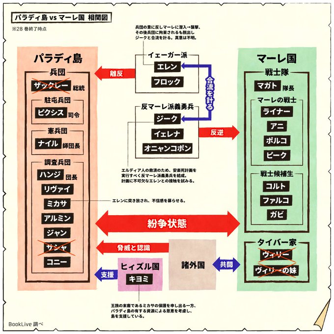 進撃の巨人の相関図で複雑な関係を簡単に コミック23巻 アニメ4期